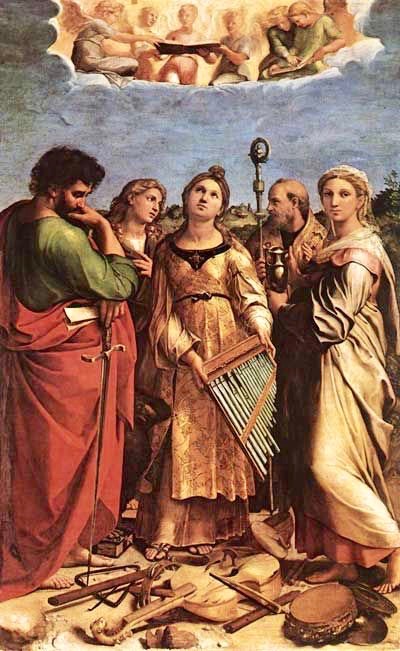 Raphael Sanzio (1483-1520): Saint Cecilia, (Sacra Conversazione) 1514, oil on canvas. Saint Cecilia surrounded by the Saints John the Evangelist, Paul, Augustine and Mary Magdalene.