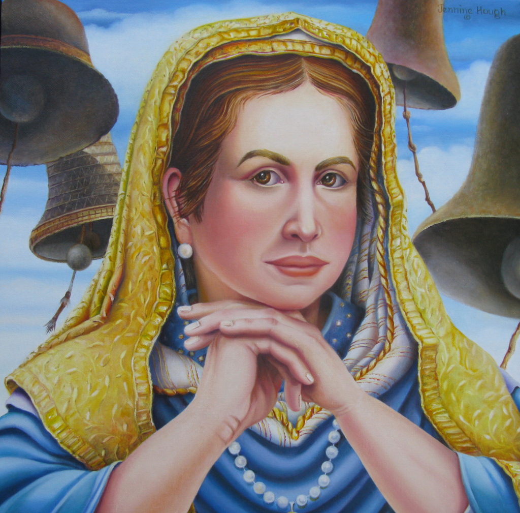 Jennine Hough “Betrothed” (Saint Cecilia), oil on canvas, 16×16, 2005