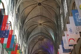This weightlessness (openness) of the walls decreased the stone wall surface and required exterior buttressing for support – flying buttresses. And it is unfortunate that the architect of this feat of engineering is unknown. The flying buttresses can be thought of as fingers supporting the wall, at the lowest point of the “springing” (the beginning of the rib vaulting.)