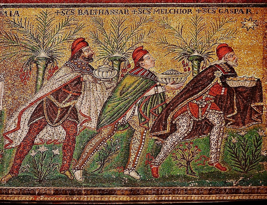 At some point, in early theological manuscripts, the names of the Magi were discovered and by the 6th century they were recorded in mosaic art. This is the earliest know visual example of their “naming”.
